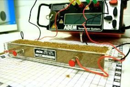 La medición de la resistividad eléctrica también se puede realizar en el laboratorio utilizando el dispositivo Soil-Box. En este caso, la medición se realiza sobre muestras compactadas saturadas