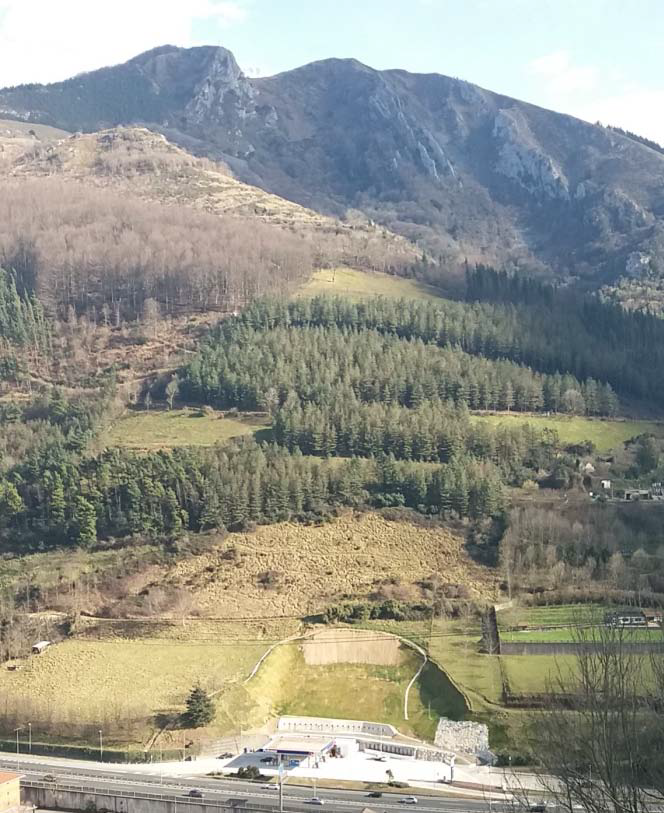 Este gran deslizamiento surgió en 2015 en el P.K. 437+200 de la N-I, destruyendo una estación de servicio, siguiendo a varios episodios de deslizamientos menores en años anteriores.